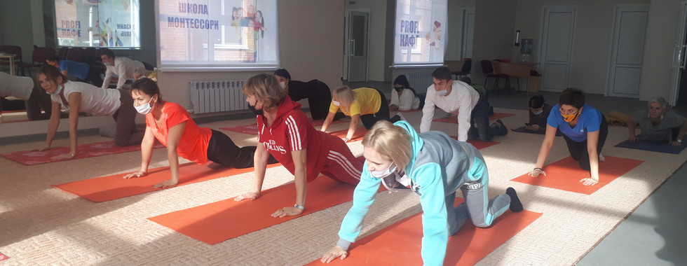 В клубе "ПереZагруzка" прошёл мастер класс для педагогов на тему: "Детская йога". Педагог МБ ДОУ 7 Дронь Е.А. поделилась своим опытом работы и провела практическое занятие, в котором поучаствовали все педагоги.